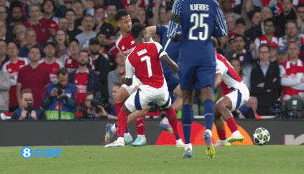 第43分钟,萨卡在前场边路被吹罚犯规,随后发泄式踢球吃到黄牌↓